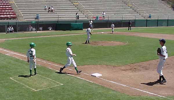 The Wyoming manager comes unglued (I would have too ;-)). After much argument, Wyoming files a formal protest, both teams return to their dugouts for the phone call. At least at this level there is only one phone call to make, Williamsport. The answer comes back quick, the 2nd base umpire call stands. 1 out, no runs scored, the bases are still loaded. Wyomings next batter lines out Olsen, and then Wilkie closes the game with a strikeout.