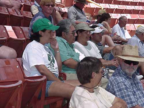 In the Championship bracket, it appears that clear favorites to be on ESPN2 live thursday night will be Souther Cal versus Washington. Washington seems to be the favorite. But if you get a chance to watch this game, be sure to take notice of SoCal's starting pitcher/shortstop lefthanded power hitter Conger. This guy is huge, strong, and a really good ball player. He is very very quick, and very tough. He has the ability take command of any game, and what's more he likes to. We saw him hit a 280 foot Grand Slam that got out of the park so fast that people were talking about it through the next inning. He has an attitude. It's kind of like Ty Cobb and Lionel Taylor rolled into one. Nate says in the mess hall he eats like a Sumo wrestler. Even though that game was blowout, there were 9000 people there. There should be more on Thursday.